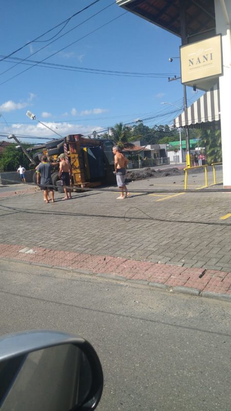 Um acidente de trânsito em Jaraguá do Sul, no Norte de Santa Catarina, envolveu um caminhão caçamba, três carros e um poste na tarde desta terça-feira (18). O caminhão, primeiro, bateu em três carros antes de colidir com um poste e ficar capotado na rua José Teodoro Ribeiro, no bairro Ilha da Figueira.