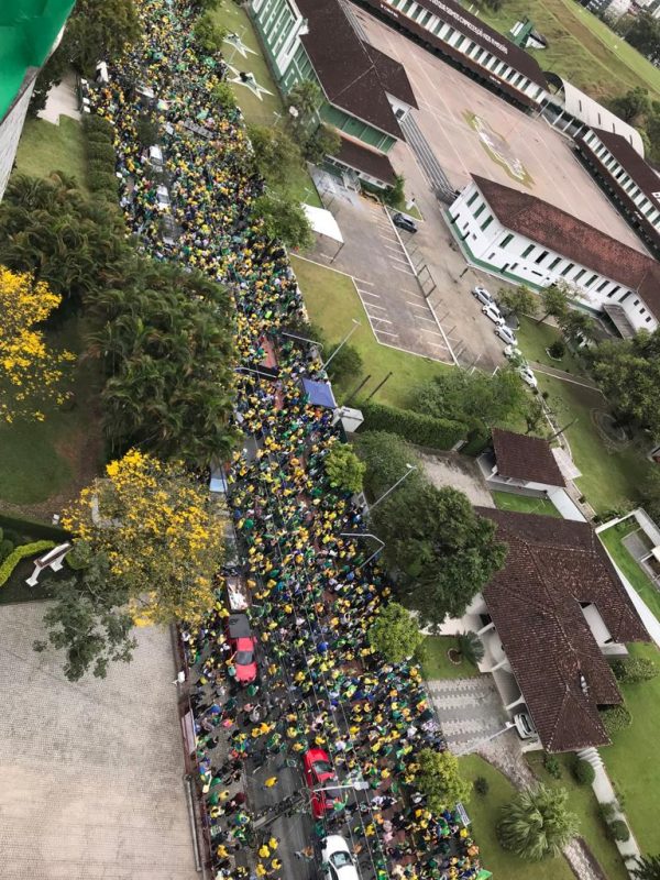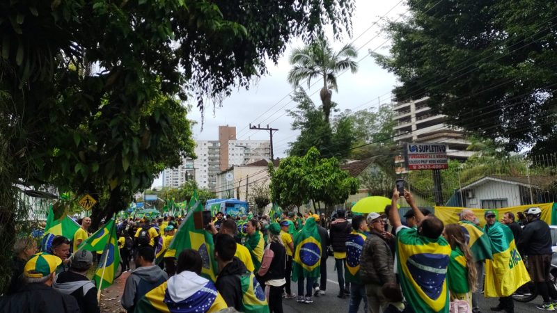 Vídeo que circula nas redes sociais sobre a manifestação em Joinville em frente ao 62 BI nesta quarta-feira (2). – Vídeo: Internet/Divulgação ND