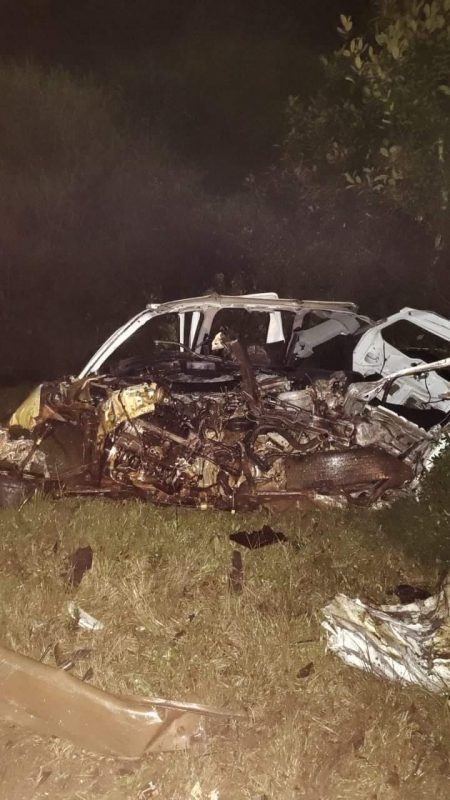 Foram identificadas as duas pessoas que morreram em um acidente entre um carro e um ônibus da banda Família Azzolini, na noite de terça-feira (14), na PR-280, em Clevelândia/PR. - 2 de 7