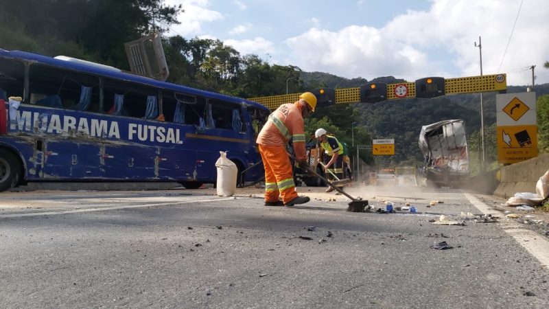 Segundo a Arteris Litoral Sul, concessionária que administra a rodovia, a pista também totalmente liberada no bloqueio anterior – na altura do km 660 – onde houve o registro do segundo acidente. – Foto: Kelly Borges/NDTV Joinville