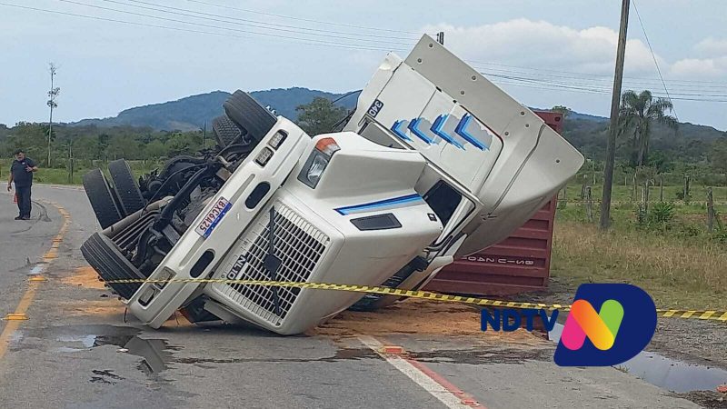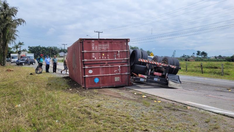 O veículo perdeu o controle após fazer uma curva na Estrada da Ilha, em Pirabeiraba, zona Norte de cidade. A suspeita é de que a carga do contêiner tenha se movimentado, causando o acidente.