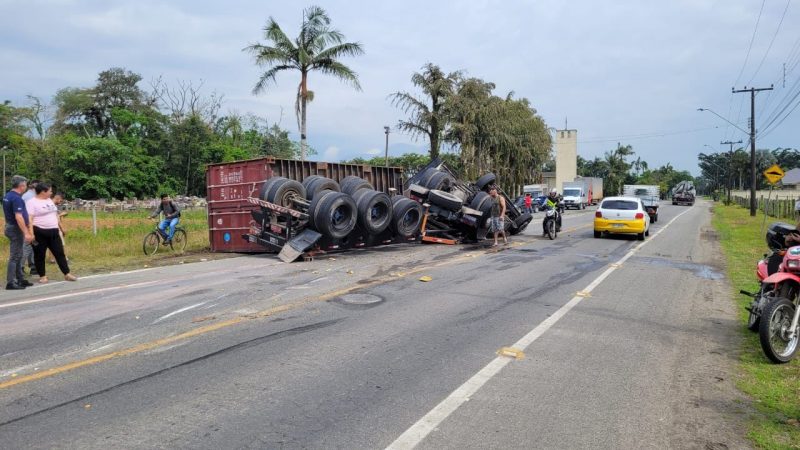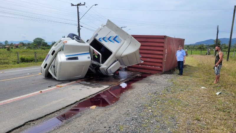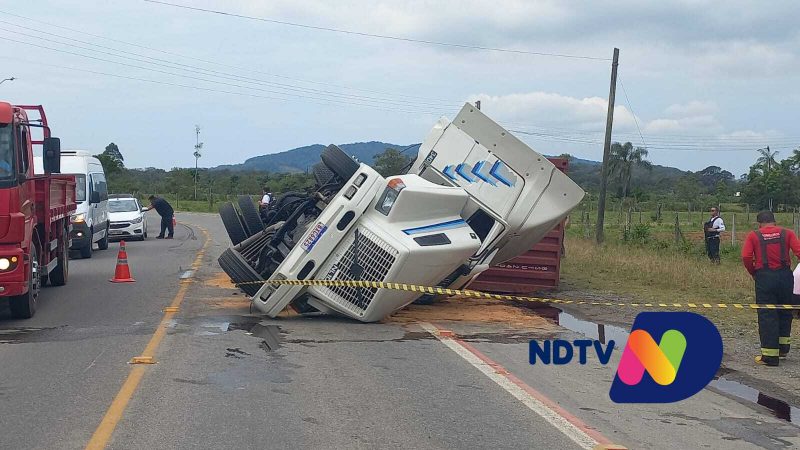 O tombamento de um caminhão mobilizou bombeiros e policiais durante a manhã desta terça-feira (27), em Joinville, no Norte de Santa Catarina.