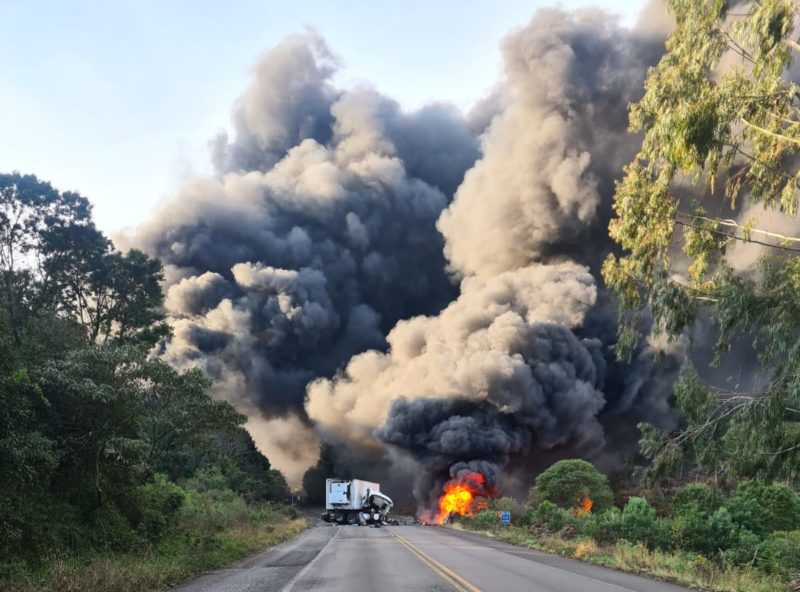 O trânsito na rodovia federal está totalmente interrompido. – Foto: Corpo de Bombeiros/ND