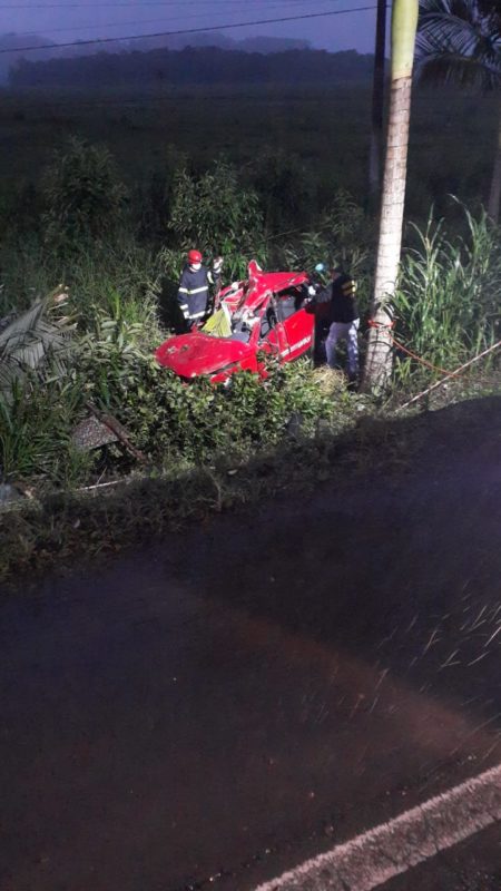 Segundo o Corpo de Bombeiros Militar, a saída de pista ocorreu por volta das 16h30, no km 3 da SC-417. No local, dois ocupantes do veículo já haviam saído sozinhos do carro quando a guarnição chegou.