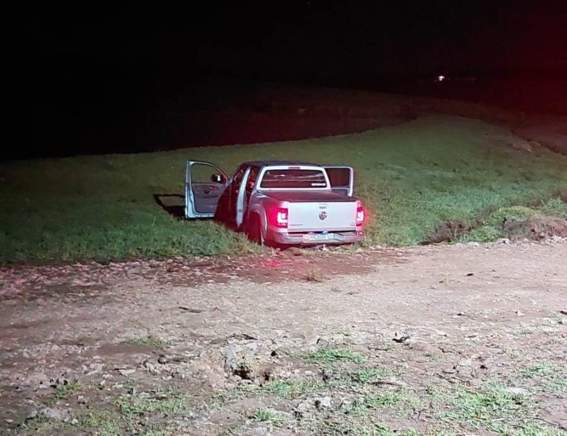 Uma quadrilha de assaltantes aterrorizou uma família no interior de Catanduvas (SC) na madrugada desta sexta-feira (1º). Os bandidos invadiram uma casa, atiraram para o alto e roubaram uma caminhonete Amarok. A fuga, porém, não foi bem sucedida.