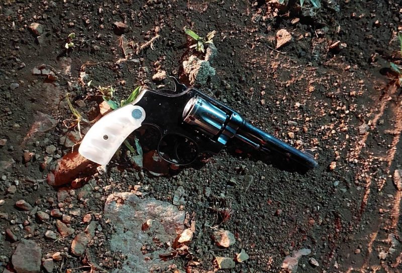 A Polícia Militar foi acionada e encontrou um revólver calibre 38 na caminhonete e um rádio comunicador. Militares de nove cidades da região foram mobilizados nas buscas pelos suspeitos, mas ninguém foi encontrado. O caso está sendo investigado pela Polícia Civil. — Foto: Polícia Militar/ND