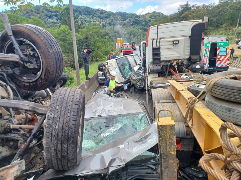 “Pressenti o problema. Quando olhei, veio o caminhão”, diz o empresário Luiz Angelo Sombrio, uma das vítimas do acidente registrado neste domingo (2) na BR-376. A rodovia liga o Paraná ao Norte de Santa Catarina. A batida que envolveu 15 veículos deixou sete pessoas feridas.