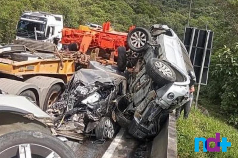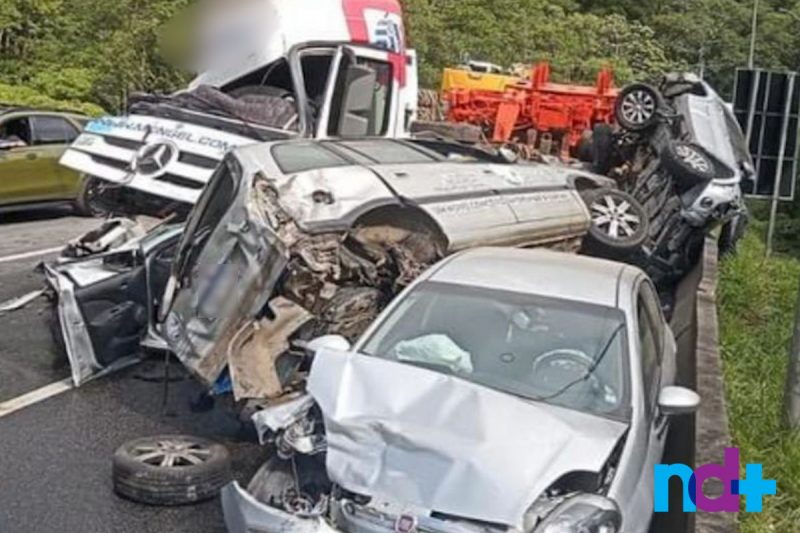 A PRF (Polícia Rodoviária Federal) informou que, ao todo, foram registrados 15 veículos envolvidos no engavetamento, incluindo o caminhão causador do acidente.