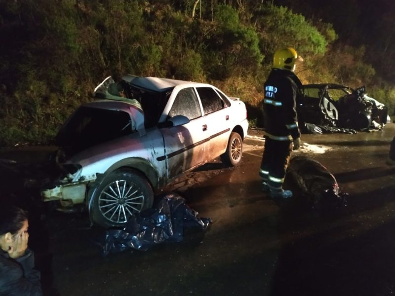 Foram identificadas as quatro pessoas que morreram em uma batida frontal entre dois carros no começo da noite de quarta-feira (15), na BR-282, em Ponte Serrada, no Oeste catarinense. – Foto: Corpo de Bombeiros/ND - 2 de 7