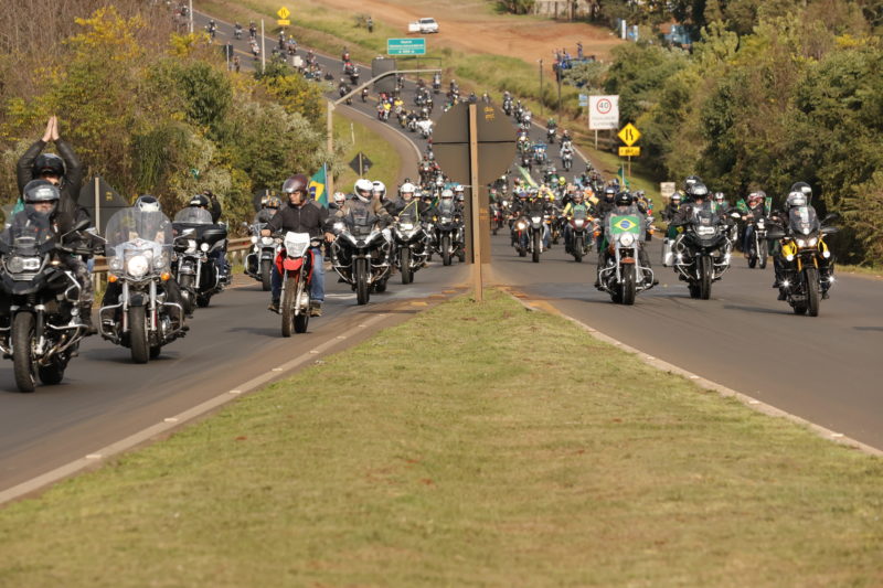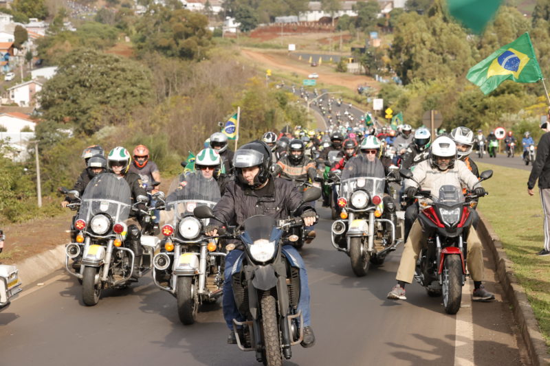 A motociata com o presidente Jair Bolsonaro (sem partido), em Chapecó, no Oeste de Santa Catarina, mobilizou motociclistas de diferentes estados e municípios da região. Motociclistas se reuniram desde cedo para acompanhar o presidente. A motociata iniciou no Distrito Industrial, às 9h, e seguiu até a cidade de Xanxerê, distante cerca de 45 km.