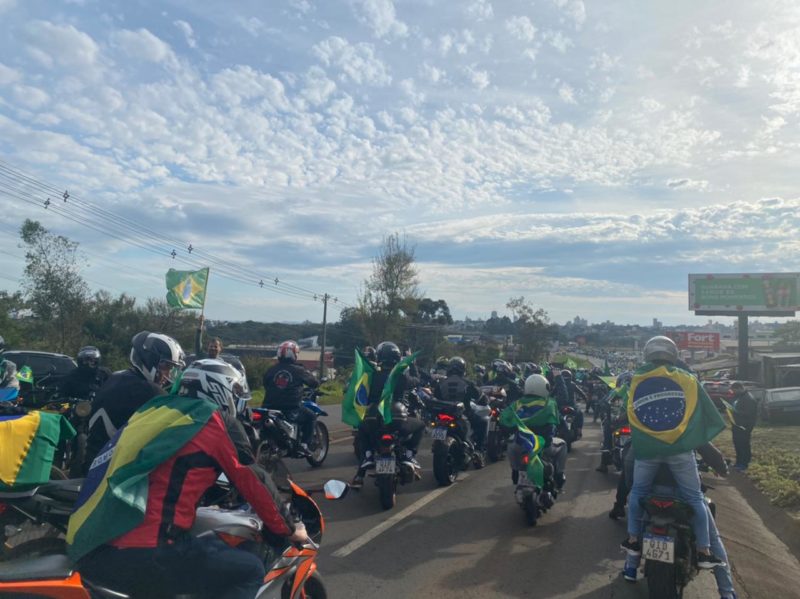Concentração de motociclistas para a motociata com Bolsonaro (sem partido) iniciou por volta das 6h, em Chapecó, no Oeste de Santa Catarina. – Foto: Liamara Polli/Especial ND