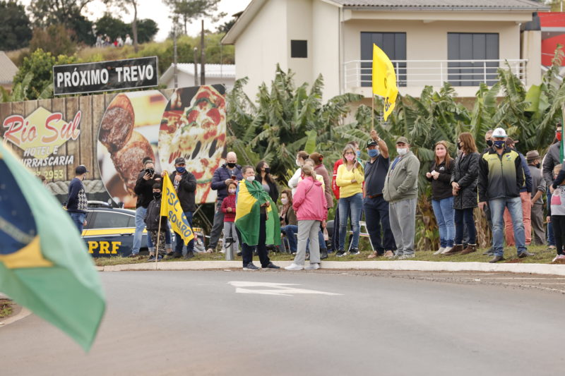 No trevo de Xaxim, município vizinho, apoiadores também esperavam a passagem do presidente. – Foto: Liamara Polli/Especial ND