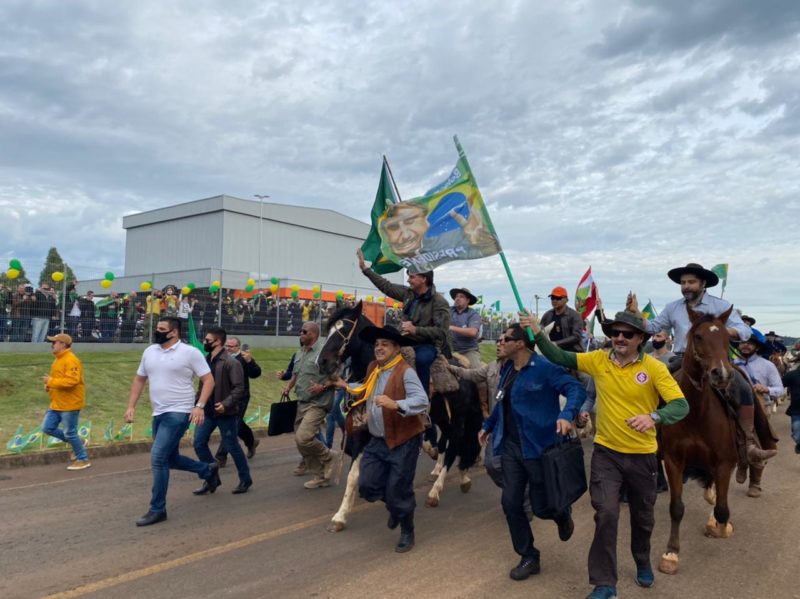 Bolsonaro chegou a cavalo e acompanhado por um grupo de tradicionalistas para a concentração da motociata no Distrito Industrial. – Foto: Willian Ricardo/ND