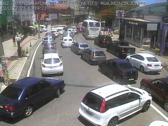 No centrinho da Lagoa da Conceição, na Avenida Afonso Delambert Neto, também é possível visualizar grande movimentação e congestionamento de veículos logo no início da tarde – Foto: Monitoramento/SSP/ND - 7 de 7