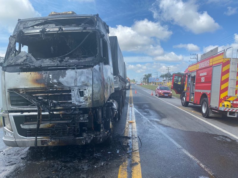 Um incêndio em um caminhão na BR-280, em Araquari, chamou atenção na manhã desta quinta-feira (12), na cidade do Norte de Santa Catarina.
