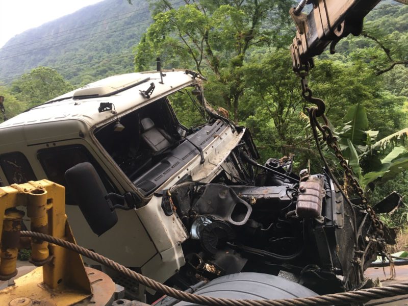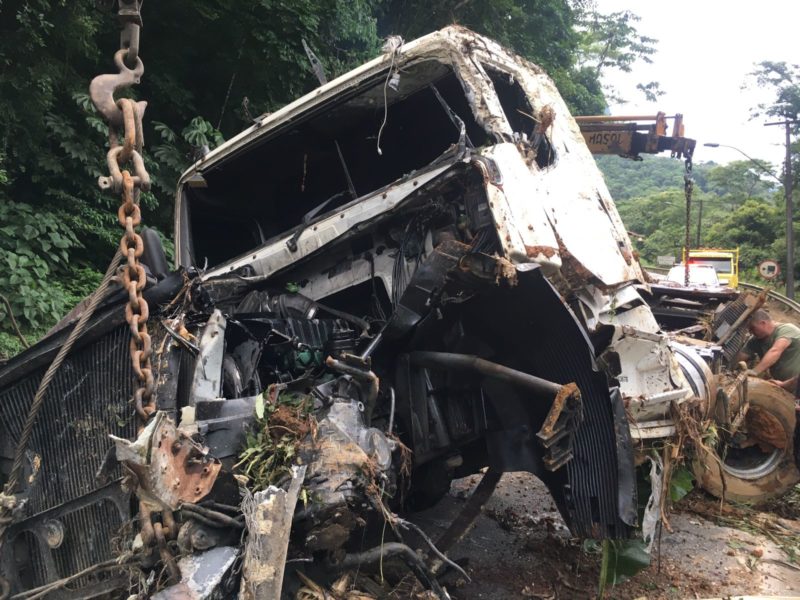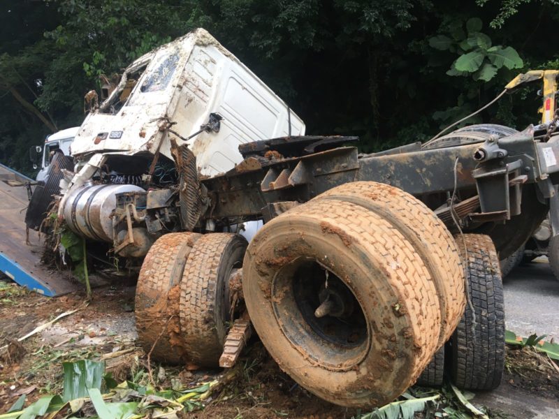 Segundo a PMRv (Polícia Militar Rodoviária), o caminhão descia a serra quando perdeu o freio, invadiu a pista contrária e acabou batendo na defensa, capotando e parando em uma área às margens da rodovia. Veja o vídeo:
