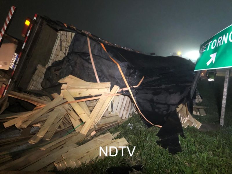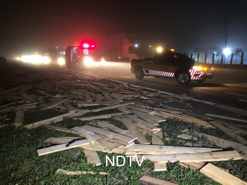 Carga de madeira ficou espalhada pela pista – Vídeo: Ricardo Alves/NDTV