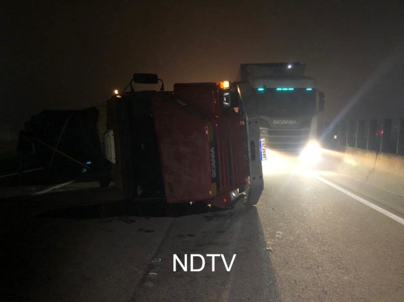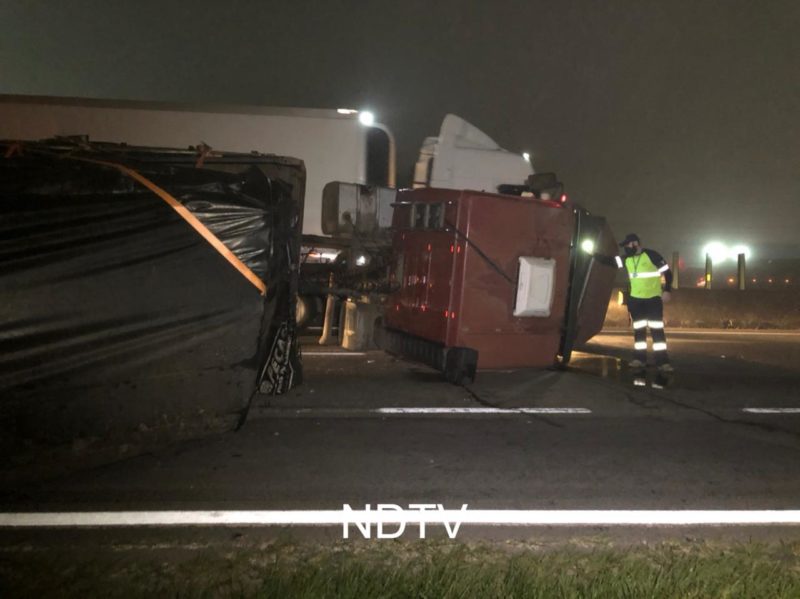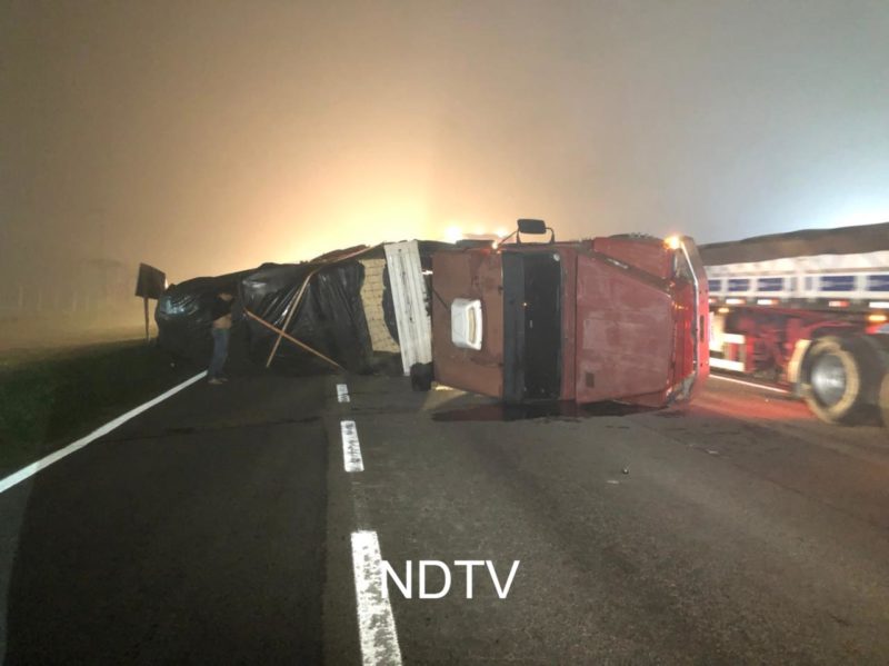 O motorista contou à equipe da NDTV que pararia para descansar a 100 m do local do tombamento e que seguia de Guarapuava, no Paraná, para Itajaí, onde descarregaria a carga no porto. Ele não se feriu.