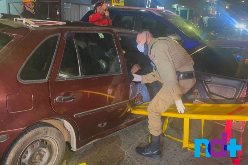 Com a batida, duas pessoas idosas que estavam no veículo vermelho ficaram feridas. Uma delas usava muletas para se locomover e precisou de ajuda das equipes da Polícia Militar e Samu para sair do carro. Os bombeiros voluntários atuaram no isolamento do local do acidente.