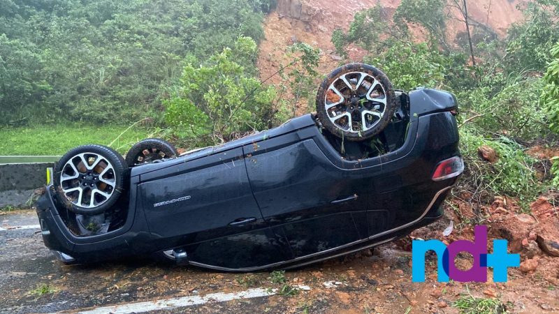 Veículos atingidos estavam parados na rodovia após deslizamento – Vídeo: Ricardo Alves/NDTV