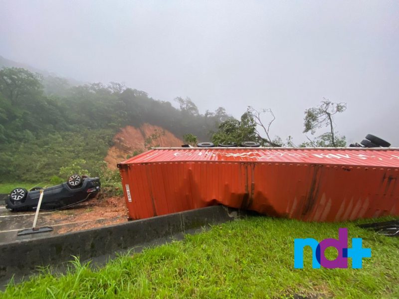Com o deslizamento da encosta, os veículos foram “jogados” da rodovia para o barranco. De acordo com os bombeiros, é possível ver cinco caminhões e seis carros no local, embora haja a possibilidade de que outros veículos estejam soterrados.