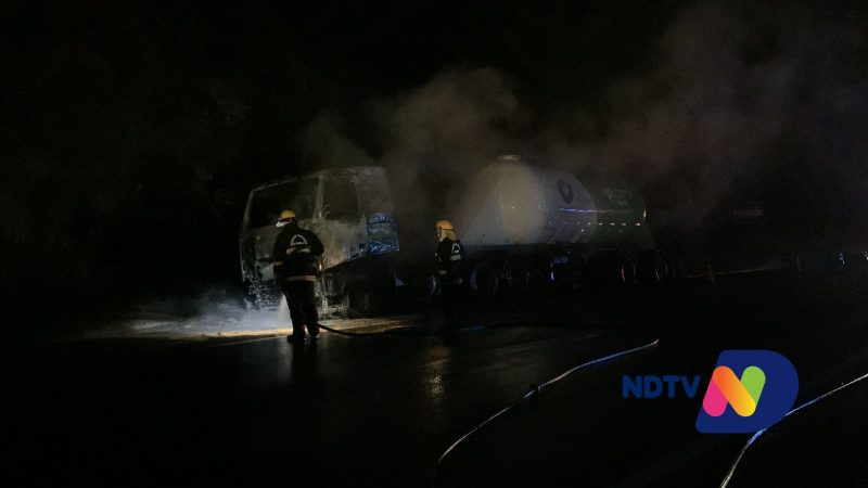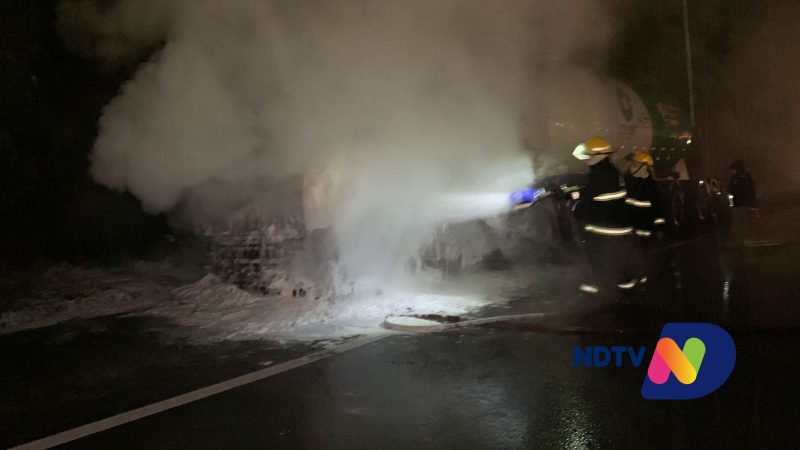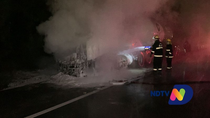 BR-101 foi interditada após incêndio em carreta carregada de cimento – Vídeo: Ricardo Alves/NDTV