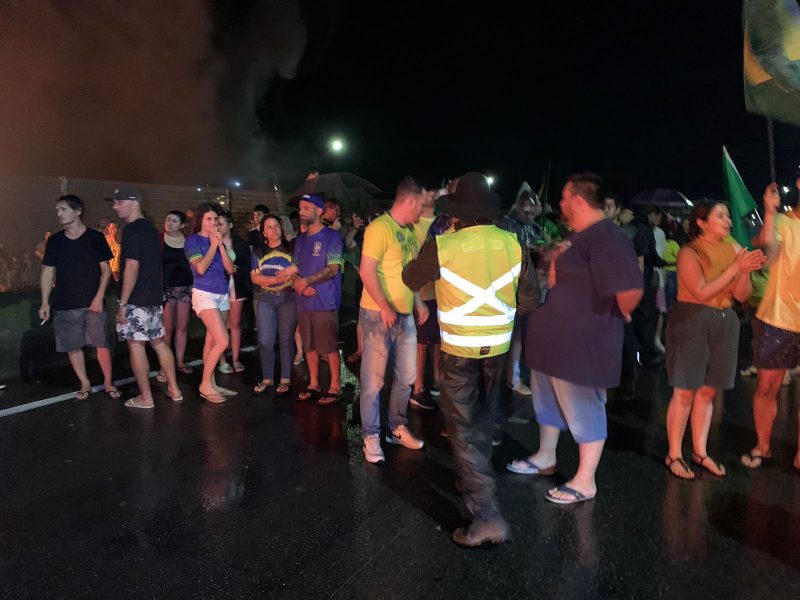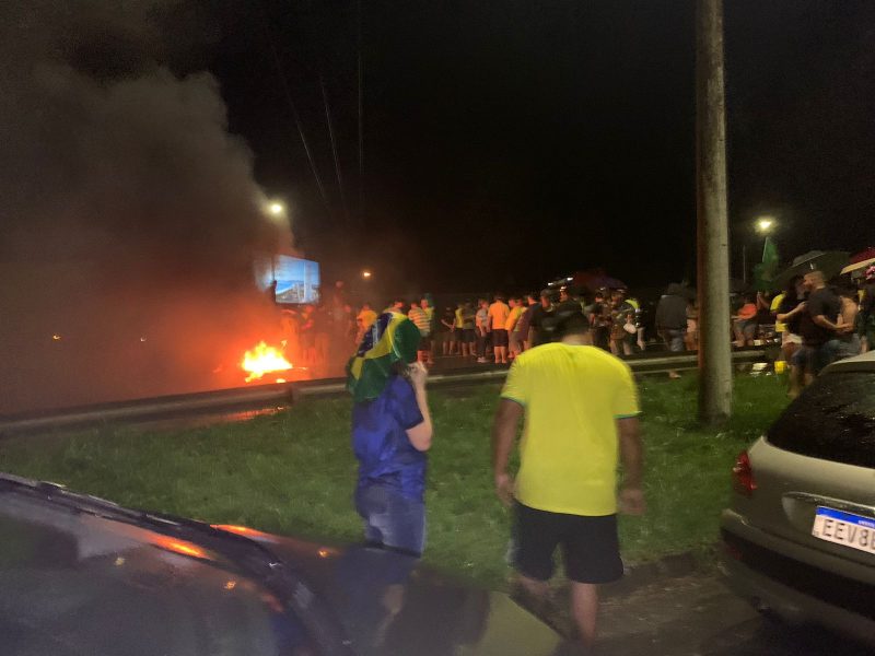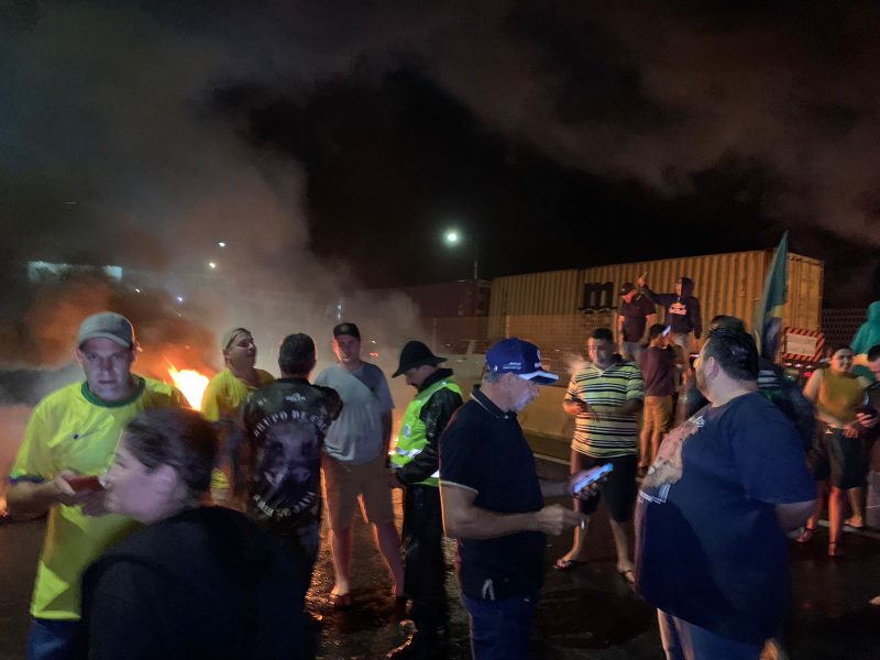 Dois trechos da BR-101 em Joinville, no Norte de Santa Catarina, estão bloqueados por manifestantes na noite deste domingo (30). Vestidos de verde e amarelo, os manifestantes colocaram cones e queimaram pneus.