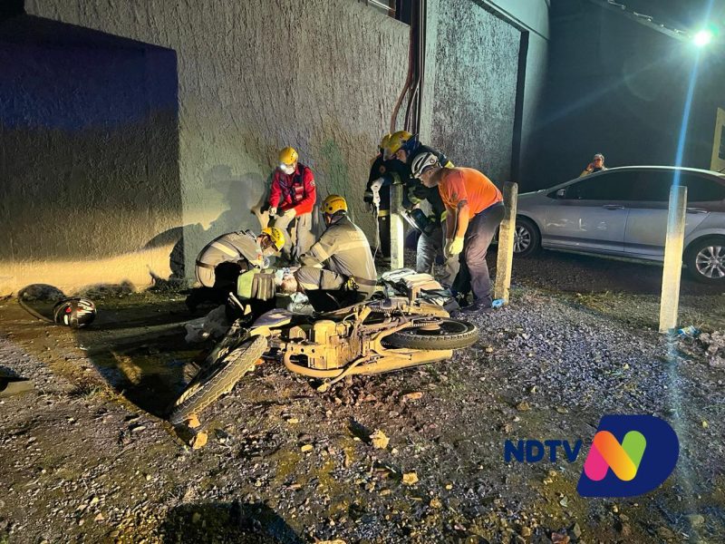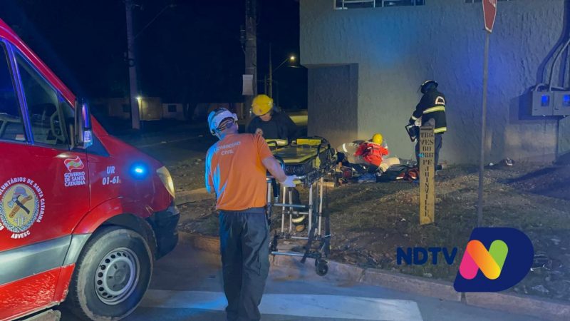 Uma motociclista ficou gravemente ferida após um acidente entre carro e motocicleta em Joinville, no Norte de Santa Catarina, na noite de quinta-feira (22).