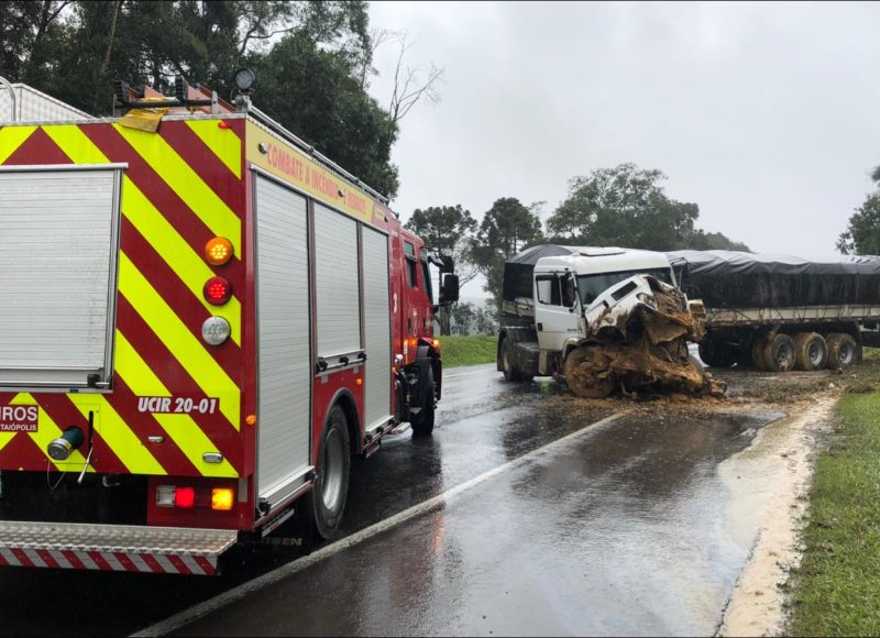 Uma mulher de 31 anos morreu em um grave acidente envolvendo um carro e três caminhões na manhã desta terça-feira (7), na BR-116, em Itaiópolis, no Planalto Norte de Santa Catarina.