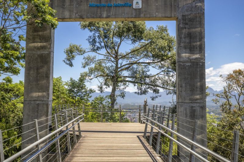 Mirante: A caminhada até o topo do Mirante é pura saúde e a vista compensa. Lá de cima é possível ver a cidade de um ângulo bem aberto, além da bela Baía da Babitonga e São Francisco do Sul. O local também conta com trilha suspensa em percurso no meio da mata, um convite para relaxar e descansar da caminhada puxada. Para chegar ao mirante, apenas por meio de caminhada, bicicleta ou pelo coletivo de ônibus com horários programados. O espaço fica aberto todos os dias. – Foto: Convention Bureau/Divulgação ND - 2 de 6