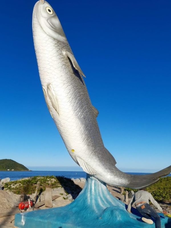 “Os comerciantes falam que a tainha trouxe muitos benefícios, que há motivos para vir à cidade. Depois do siri, vai dobrar”, destaca. Para completar a estátua, falta apenas a pintura. Veja as fotos: