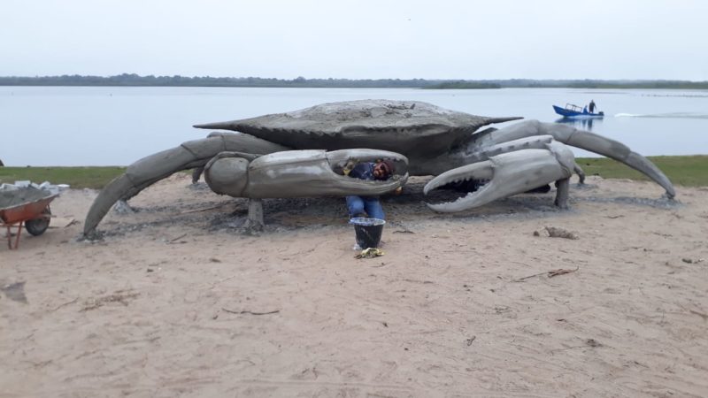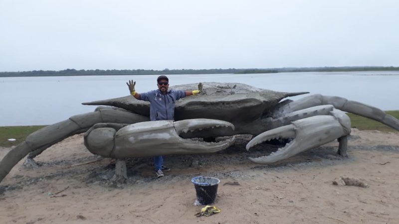 Após surpreender moradores e turistas com uma tainha gigante à beira-mar, Balneário Barra do Sul já prepara uma nova atração para encantar quem passeia pela cidade do Litoral Norte de Santa Catarina. Desta vez, é uma estátua em forma de siri que chama a atenção na praia catarinense.