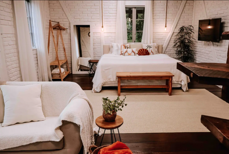 As imagens são tão belas que fazem a gente se imaginar dentro da casa, que mais parece coisa de cinema. Fim de semana chegando e o que o Portal ND+ faz? Busca um refúgio para alugar e relaxar em família ou entre amigos. Essa casa de campo fica em Joinville, na zona rural do bairro Vila Nova, e acomoda quatro hóspedes. Fica a cerca de 30min do centro de Joinville.