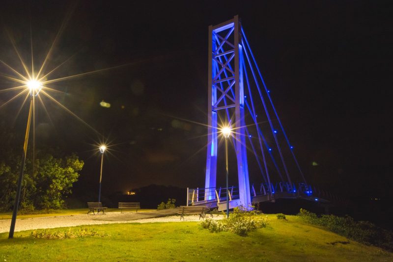 Praia do Capri: para aproveitar em qualquer momento do dia. Além de águas tranquilas, baía, própria para banhos e esportes náuticos, também é favorável para acompanhar o sol poente seja em uma embarcação ou à beira mar. Um dos pontos turísticos do Balneário de Capri é a Passarela Estaiada. – Foto: Prefeitura de São Franscisco do Sul/Divulgação/ND - 6 de 8