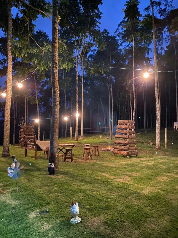 Chácara em zona rural: localizado em Joinville. Disponibilidade de galpão para eventos, área para acampamento. Acesso privado ao rio Piraí. No local possui animais como cachorros, galinhas ornamentais, galos, pintinhos e gansos. É permitido trazer outros animais. – Foto: Reprodução/Airbnb/ND - 14 de 18