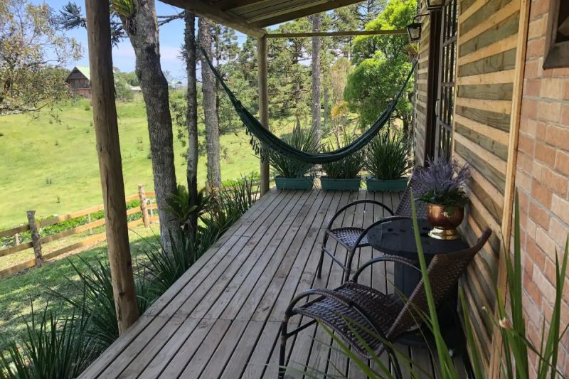 Cabana do Vale – RANCHO KÜNZEL (Campo Alegre): possui redes para descanso, um belo jardim e espaços para passeios. É ótimo para curtir em família, para descansar e fazer home office. – Foto: Airbnb/Divulgação - 11 de 24