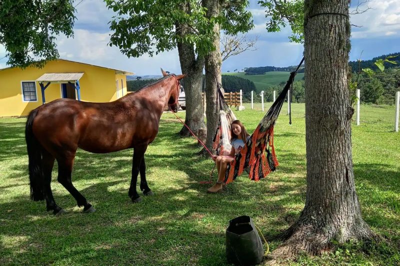 Estância Miratami Casa Amarela (Mafra): hospede tem acesso a toda propriedade, inclusive contato com os cavalos. – Foto: Airbnb/Divulgação - 15 de 24