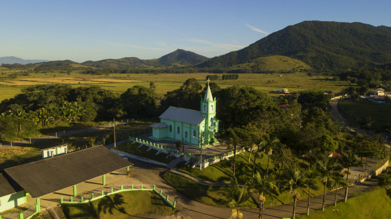 A Capela São João Batista fica no topo de um morro, no Sertão do Trombudo. É uma das capelas mais antigas de Itapema, datada de 1946. A construção foi orientada por membros da família Tomio, de origem italiana que chegaram ao Bairro Sertão no início do século XX. Ali acontece em junho a tradicional Festa de São João Batista, padroeiro da comunidade local – Foto: Prefeitura de Itapema/Divulgação