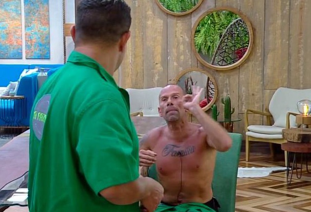 Evandro Santo x Rafael Ilha: Na reta final dessa mesma edição, o clima esquentou entre Rafael e Evandro! Eles trocaram acusações e teve quem foi chamado de falso e grosseiro – Foto: Reprodução/Record TV - 9 de 10