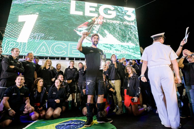 Campeões da terceira etapa da competição, velejadores do time Malizia chegaram na madrugada deste domingo (2) – Foto: Sailing Energy / The Ocean Race/ND