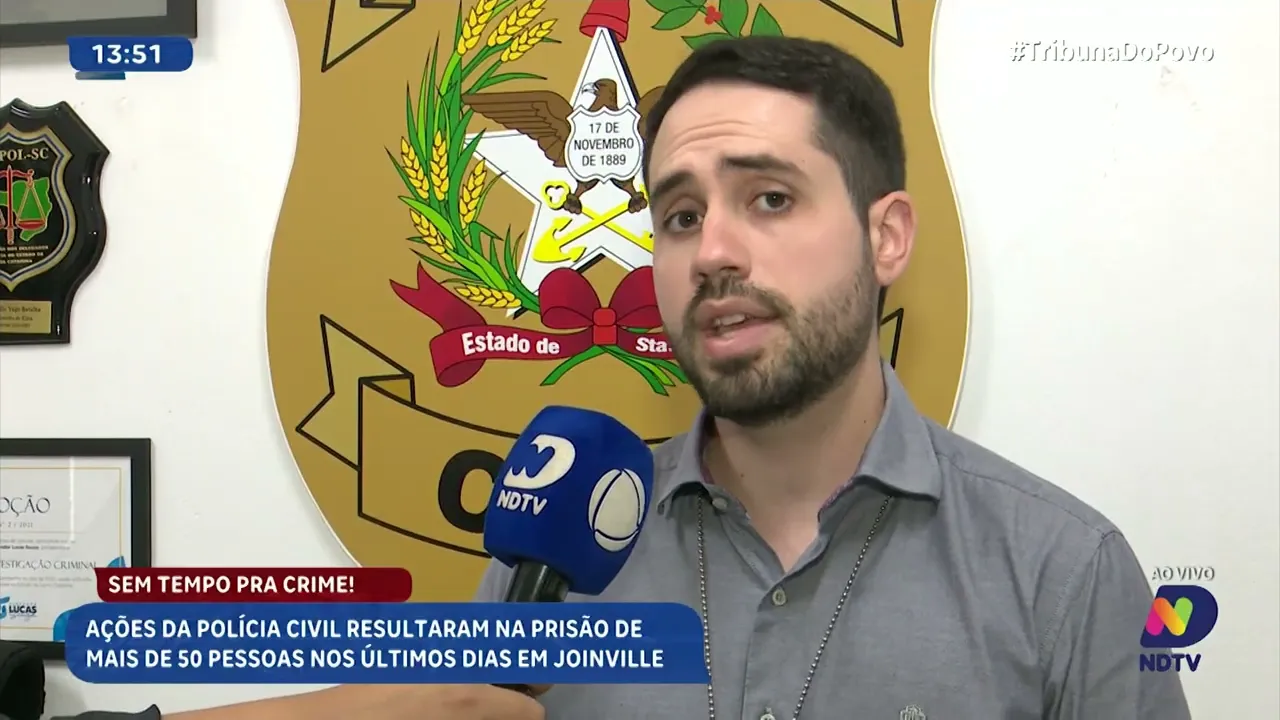 A Polícia Civil realizou mais de 50 prisões nos últimos dias em Joinville, em uma ofensiva contra a criminalidade. As ações reforçam a segurança e mostram a intensificação das operações no município. Confira os detalhes ao vivo com David Paulo.