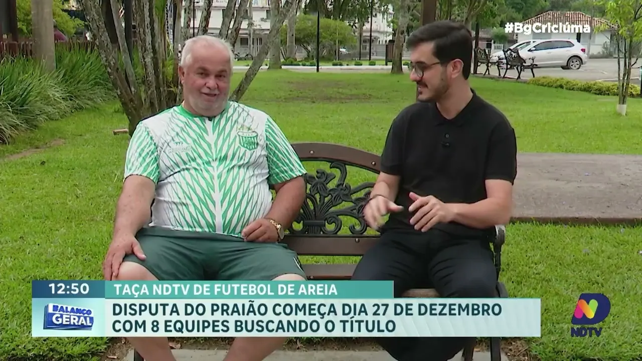 A Taça NDTV de Futebol de Areia, que começa no dia 27 de dezembro, já está movimentando o Praião com muita expectativa. Até lá, o BG apresenta as equipes que disputam a competição. Uma delas é o Ajax, time amador que promete se destacar na disputa. O presidente do Ajax, Alberto Tinho, fala sobre o preparo da equipe e os desafios de competir contra outros sete times que também buscam a vitória. A reportagem mostra o clima de preparação, o espírito competitivo e a importância do torneio para os atletas e para os fãs de futebol de areia, reforçando o crescimento e a popularidade desse esporte na região.