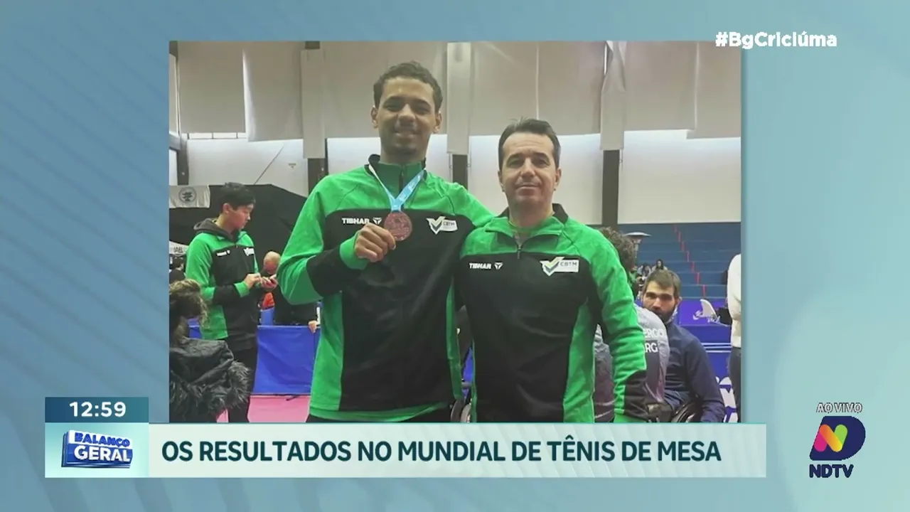 Gabriel Antunes, atleta da S.R. Mampituba de Criciúma, teve destaque na etapa do Mundial de Tênis de Mesa realizada em Buenos Aires, conquistando três medalhas para o Brasil. Ele faturou ouro nas duplas com Jean Carlos de Souza, prata nas duplas mistas ao lado de Jennyfer Parinos e bronze no individual classe 10. O técnico criciumense Alexandre Ghizi integra a comissão técnica da seleção brasileira, que somou ao todo 37 medalhas na competição.