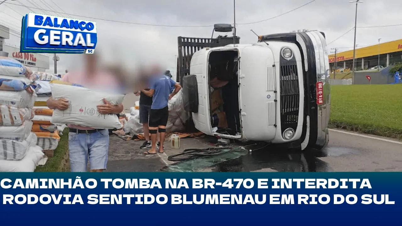 Br-470: caminhão tomba na BR-470 e interdita rodovia sentido Blumenau em Rio do Sul