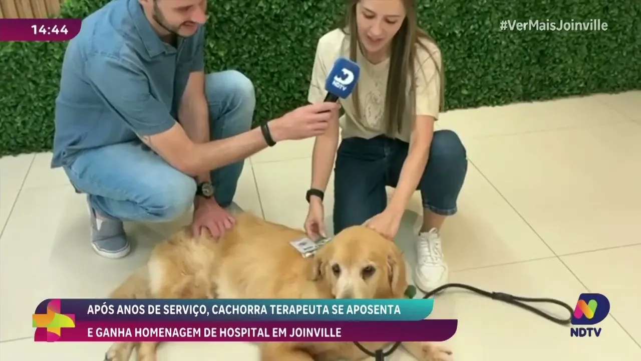 Após anos dedicados ao cuidado e ao conforto de pacientes, uma cachorra terapeuta se aposentou e recebeu uma homenagem especial de um hospital particular em Joinville. Mikael Melo acompanhou essa história emocionante e mostrou a importância do trabalho do animal na rotina hospitalar.