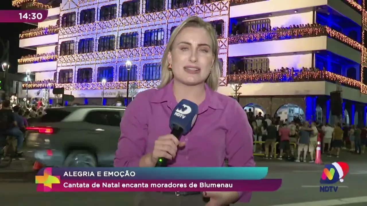 As janelas e sacadas da Prefeitura de Blumenau estiveram iluminadas na noite de ontem (4) em mais uma edição da tradicional Cantata de Natal dos alunos do colégio Adventista.