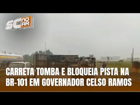 Uma carreta tombou e interditou completamente o sentido Norte da BR-101, na altura de Governador Celso Ramos, na manhã desta terça-feira(2).