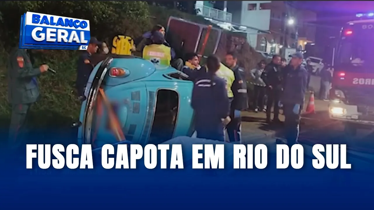 Um fusca capotou na noite desta segunda-feira (09), em Rio do Sul, e duas pessoas tiveram ferimentos.