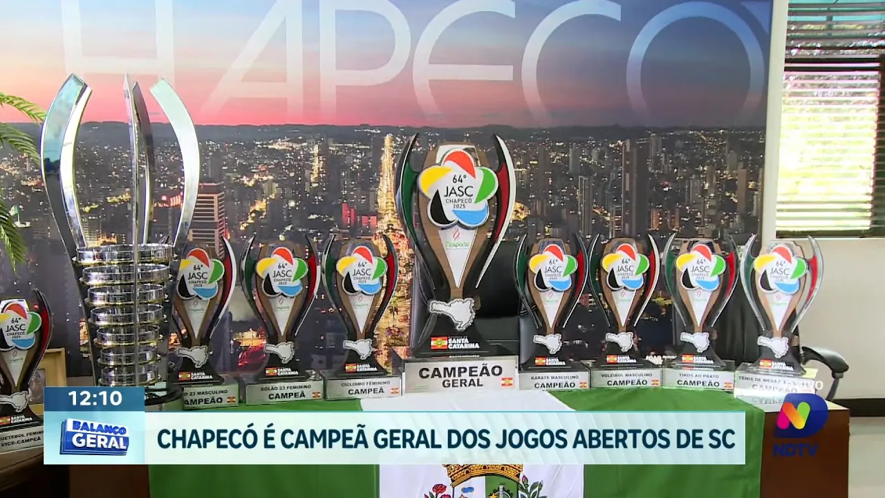 Chapecó escreveu um capítulo histórico no esporte catarinense ao se tornar, pela primeira vez, campeã geral dos Jogos Abertos de Santa Catarina (JASC). A conquista consagra o desempenho das equipes do município, que se destacaram em diversas modalidades ao longo da competição. A vitória reforça o fortalecimento do esporte no Oeste e evidencia o investimento contínuo em atletas, infraestrutura e formação esportiva. A presença do repórter Vinícios Ranzan ao vivo ajuda a detalhar essa conquista inédita, que marca a participação de Chapecó em uma das maiores competições poliesportivas do país e celebra o orgulho da comunidade local.
