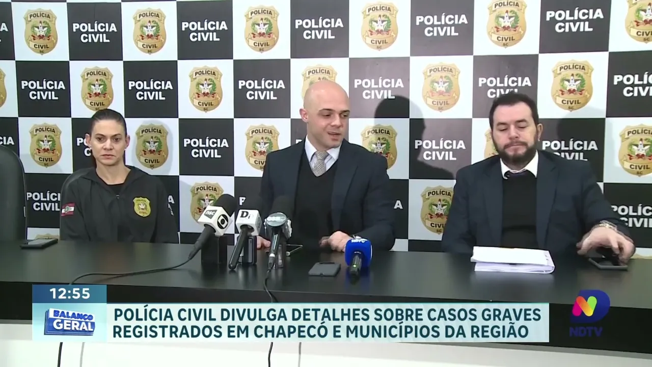 A segurança pública de Chapecó e região foi tema de uma coletiva de imprensa realizada nesta manhã, onde as forças policiais apresentaram detalhes sobre três casos graves que mobilizaram equipes nos últimos dias. As ocorrências envolvem crimes de estupro de vulnerável, sequestro de criança e homicídio, e aconteceram em Chapecó e municípios próximos. Marcos Lewe e Jair Correia acompanharam a coletiva e trazem os desdobramentos dessas investigações no Balanço Geral.